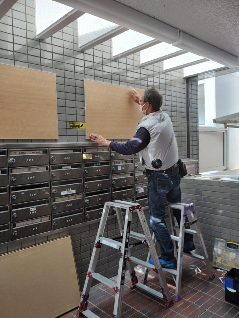 掲示板取付工事(福岡市西区周船寺:分譲マンション)