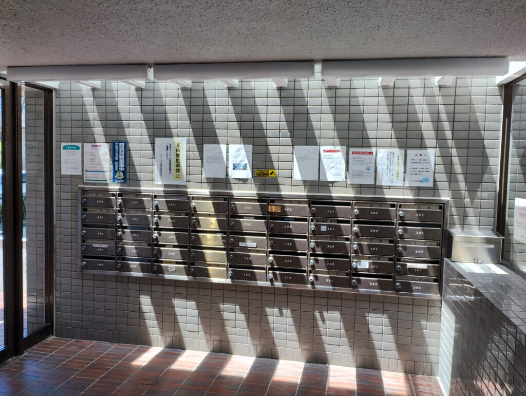 今日のご紹介は、福岡市区西区周船寺の分譲マンション「ホワイトピア周船寺」様です。今回のご依頼内容は、下の写真のようにお知らせや告知のポスター等が煩雑に貼られているとのことで、新たに掲示板の設置をお願いされました。