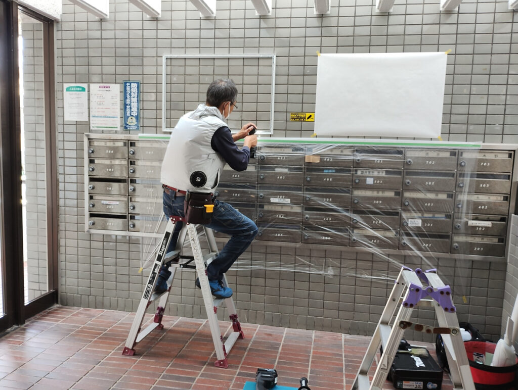 掲示板取付工事(福岡市西区周船寺:分譲マンション)
